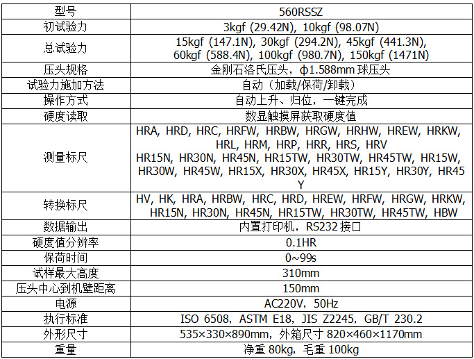 560RSSZ自動(dòng)洛氏硬度計(jì)外形新穎、功能齊全、操作方便、顯示清晰直觀、性能穩(wěn)定,是集機(jī)電于一體的高新技術(shù)產(chǎn)品。儀器取消了砝碼,采用電動(dòng)加卸試驗(yàn)力,可進(jìn)行洛氏、表面洛氏全部標(biāo)尺的硬度測(cè)試。