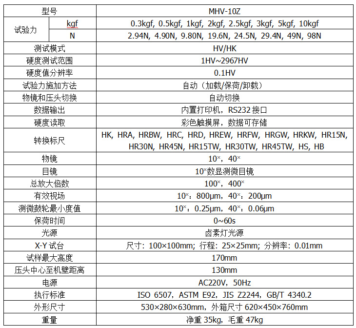 MHV-10Z數(shù)顯維氏硬度計(jì)是光、機(jī)、電一體化的高新技術(shù)產(chǎn)品,采用閉環(huán)式加載控制系統(tǒng),試驗(yàn)力精度高,示值的重復(fù)性及穩(wěn)定性佳。該儀器采用全新的高分辨率彩色觸摸屏,顯示直觀清晰,操作方便,顯示屏背光可調(diào)、具備節(jié)能模式。配備數(shù)顯測微目鏡,不用查表,也不用輸入壓痕對角線,在觸摸屏上直觀地顯示試驗(yàn)力、壓痕長度、保荷時(shí)間、測量次數(shù)、轉(zhuǎn)換標(biāo)尺、日期時(shí)間,操作時(shí)只要測量壓痕按目鏡按鈕,即可自動(dòng)計(jì)算出硬度值并顯示在屏幕上。硬度測試結(jié)果實(shí)時(shí)保存,任意數(shù)據(jù)可選刪除及打印輸出,自動(dòng)計(jì)算最大、最小、平均值;并配有RS232接口供用戶連接電腦輸出。可選配LCD視屏測量裝置和CCD圖像自動(dòng)測量系統(tǒng)。
