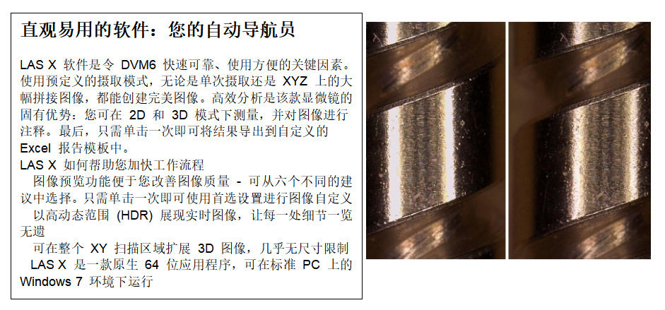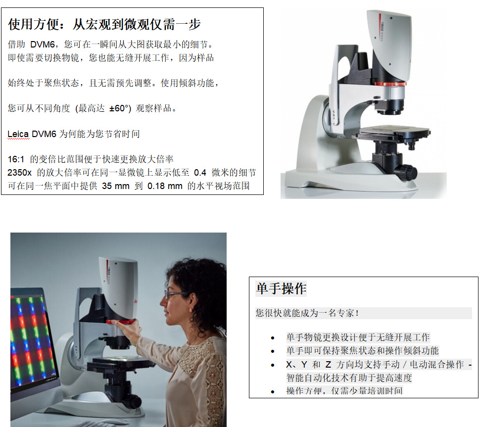 借助 DVM6,您可在一瞬間從大圖獲取最小的細(xì)節(jié)。即使需要切換物鏡,您也能無縫開展工作.