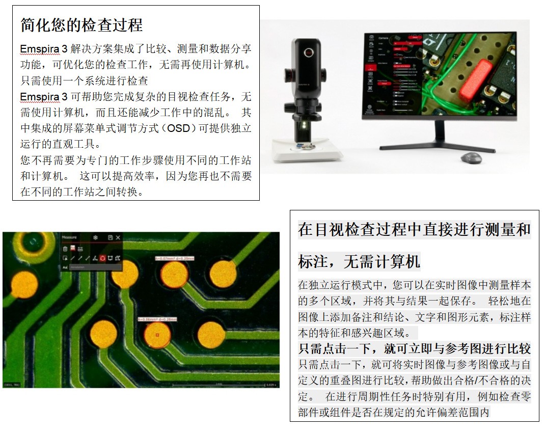 Emspira 3解決方案集成了比較、測(cè)量和數(shù)據(jù)分享功能,可優(yōu)化您的檢查工作,無需再使用計(jì)算機(jī)。只需使用一個(gè)系統(tǒng)進(jìn)行檢查